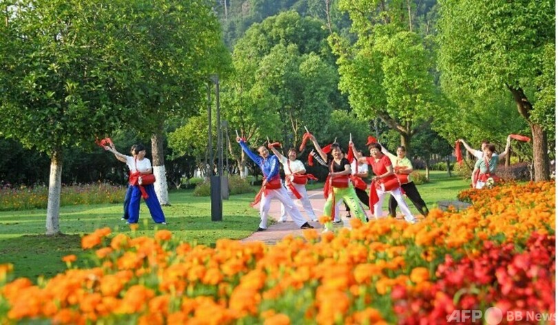 重慶市(Chongqing)の栖霞鎮(Qixia)では、栖霞公園の近くに住む肖本芳(Xiao Benfang)さんが「ここは以前、荒れた傾斜地でした。今は広場が整備され、私は毎日ダンスをしに来ています。きれいで快適です」と話した。