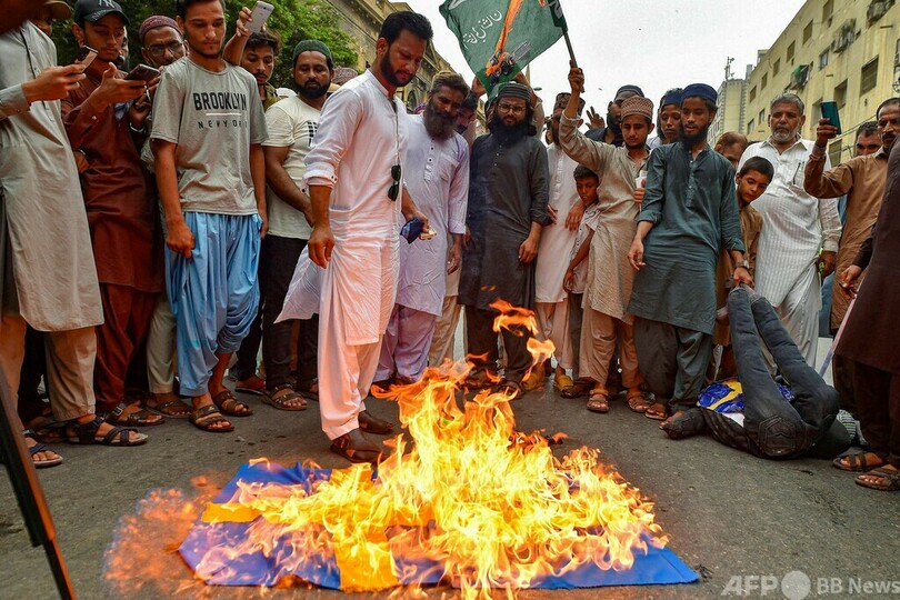 【7月8日 AFP】イスラム教国パキスタン各地で7日、スウェーデンの首都ストックホルムのモスク(イスラム礼拝所)前でイスラム教の聖典コーラン(Koran)が燃やされたことに抗議するデモが行われた。