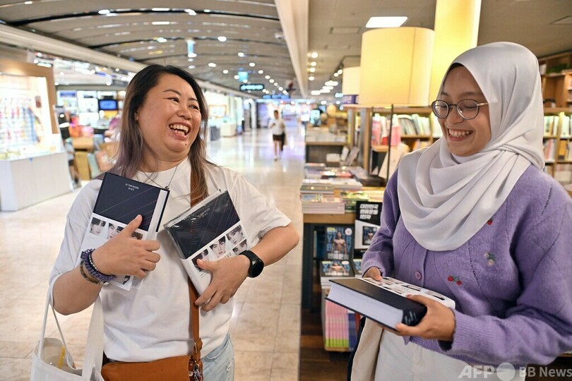 ソウル市内の書店には9日朝、豪雨の中でも書籍を求める熱烈なファンが集まった。