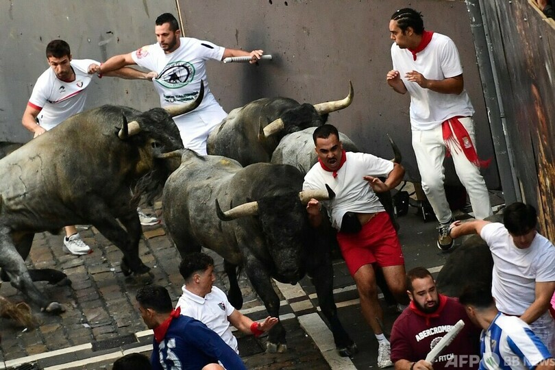 牛に追われ熱狂 スペイン恒例「サン・フェルミン祭」