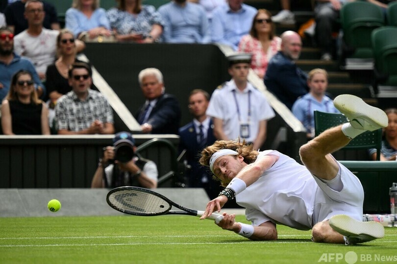 【7月10日 AFP】テニス、ウィンブルドン選手権(The Championships Wimbledon 2023)は9日、男子シングルス4回戦が行われ、大会第7シードのアンドレイ・ルブレフ(Andrey Rublev)は7-5、6-3、6-7(6-8)、6-7(5-7)、6-4で第23シードのアレクサンダー・バブリク(Alexander Bublik、カザフスタン)との5セットの激闘を制し、自身初となる大会8強入りを果たした。