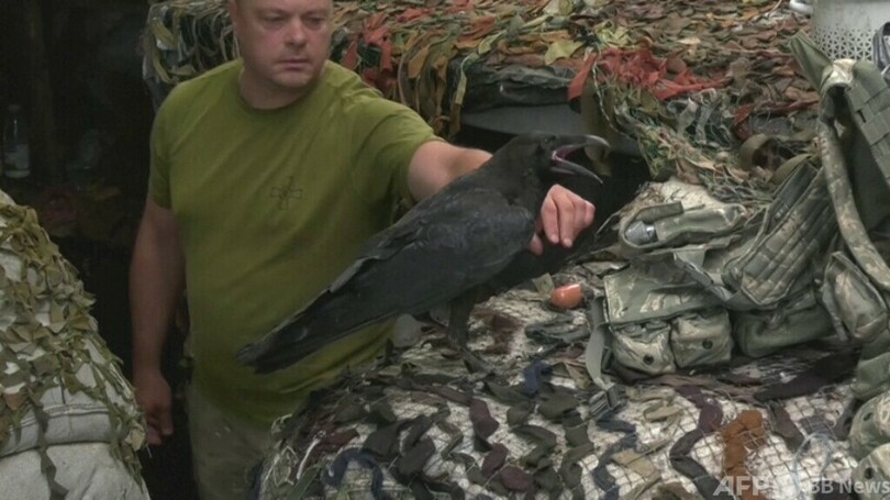 【7月21日 AFP】ウクライナ東部ハルキウ(Kharkiv)州の前線の塹壕(ざんごう)で、兵士とカラスの「マビック」が友情を育んでいる。
