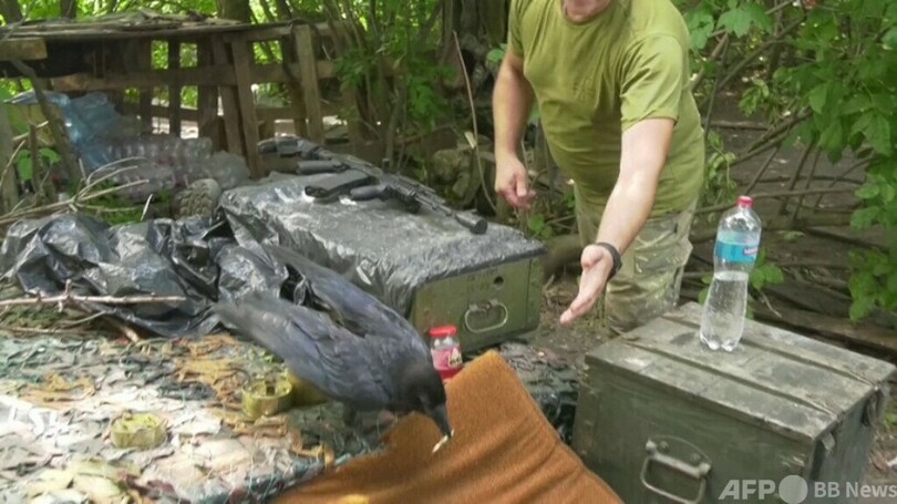 【7月21日 AFP】ウクライナ東部ハルキウ(Kharkiv)州の前線の塹壕(ざんごう)で、兵士とカラスの「マビック」が友情を育んでいる。
