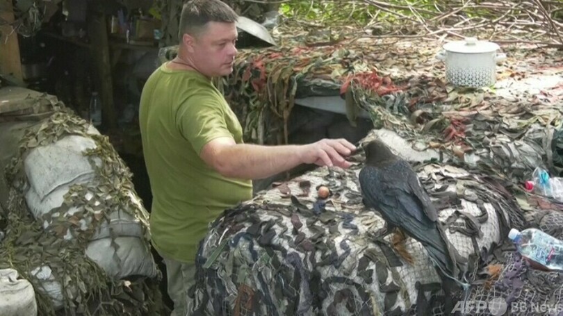 【7月21日 AFP】ウクライナ東部ハルキウ(Kharkiv)州の前線の塹壕(ざんごう)で、兵士とカラスの「マビック」が友情を育んでいる。