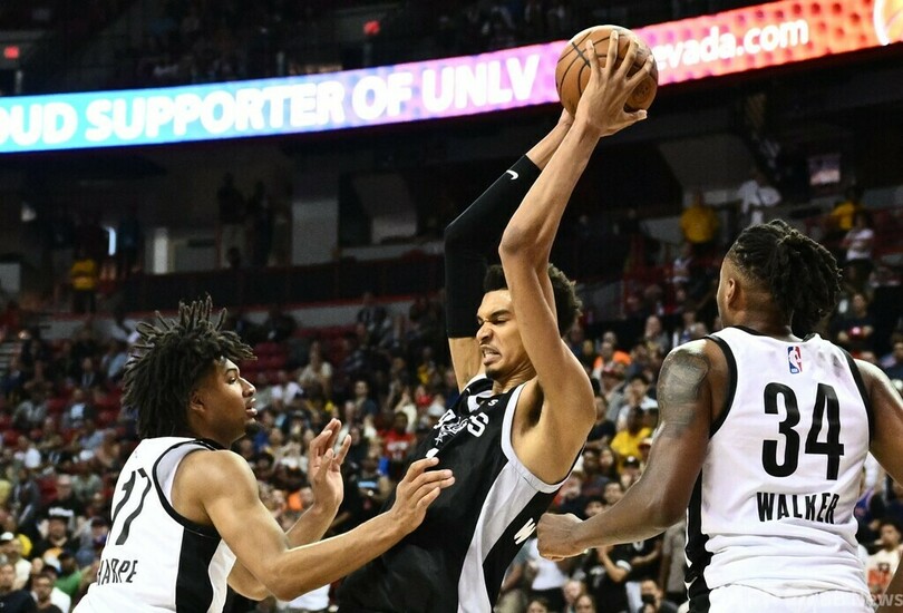 【7月10日 AFP】米プロバスケットボール(NBA)のサマーリーグが9日、各地で行われ、ドラフトでサンアントニオ・スパーズ(San Antonio Spurs)から全体1位指名されたビクター・ウェンバンヤマ(Victor Wembanyama)が加入後2試合目となるポートランド・トレイルブレイザーズ(Portland Trail Blazers)戦に臨み、27得点をマークした。チームは80-85で敗れた。