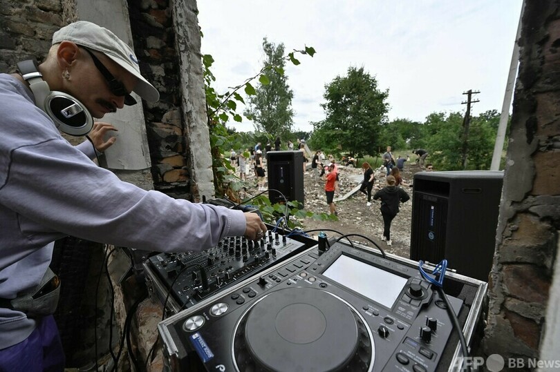 【7月11日 AFP】ウクライナ北部チェルニヒウ(Chernigiv)州で週末、爆撃で破壊された建物に大勢の若者が集まった。周囲にはクラブミュージックが鳴り響く。
