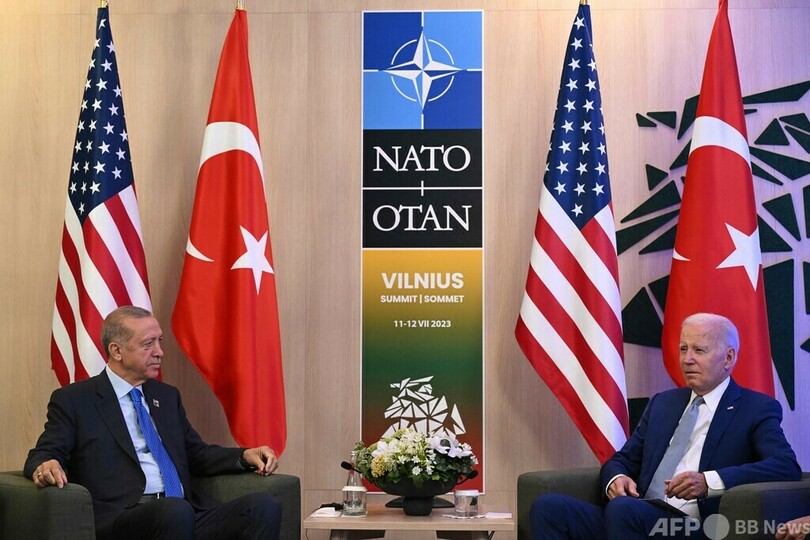 バイデン氏は、NATO首脳会議の開催地リトアニアの首都ビリニュスでエルドアン氏と会談し、同氏への外交的な働き掛けが実を結んだと評価。エルドアン氏に「あなたの外交力と勇気、指導力に感謝する」と伝えた。