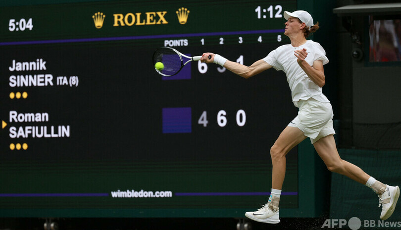 【7月12日 AFP】テニス、ウィンブルドン選手権(The Championships Wimbledon 2023)は11日、男子シングルス準々決勝が行われ、大会第8シードのヤニック・シナー(Jannik Sinner、イタリア)は6-4、3-6、6-2、6-2でロマン・サフィウリン(Roman Safiullin)を退け、初の四大大会(グランドスラム)準決勝進出を果たした。