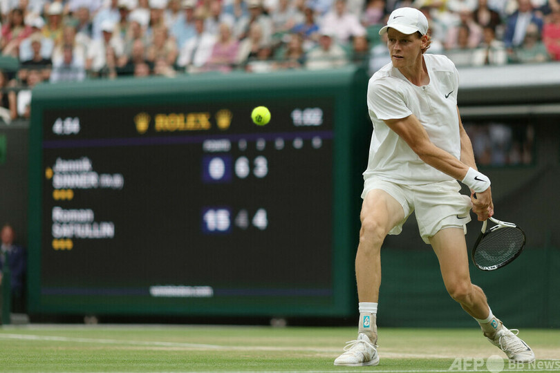 【7月12日 AFP】テニス、ウィンブルドン選手権(The Championships Wimbledon 2023)は11日、男子シングルス準々決勝が行われ、大会第8シードのヤニック・シナー(Jannik Sinner、イタリア)は6-4、3-6、6-2、6-2でロマン・サフィウリン(Roman Safiullin)を退け、初の四大大会(グランドスラム)準決勝進出を果たした。