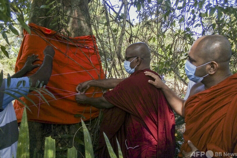 「出家」した木、高速道路建設のため撤去 スリランカ