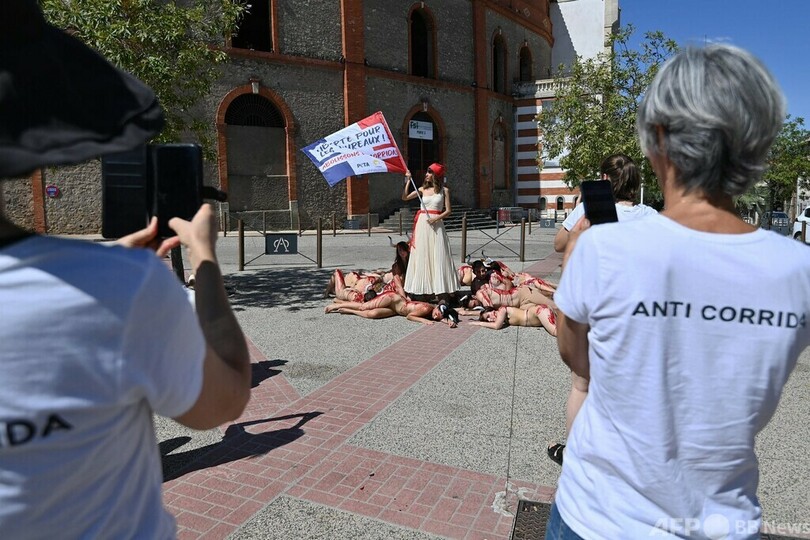 ニュース 社会 牛に自由を! 動物愛護団体、闘牛に抗議 南仏 2023年7月13日 21:26 発信地:ベジエ/フランス [ フランス ヨーロッパ ] このニュースをシェア ‹ › ❮ 6/6 ❯ フランス南部ベジエの闘牛場前で、「動物の倫理的扱いを求める人々の会(PETA)」の呼び掛けで行われた闘牛に対する抗議デモの様子(2023年7月13日撮影)。(c)Sylvain THOMAS / AFP 画像作成中 ! 【7月13日 AFP】フランス南部ベジエ(Beziers)で13日、動物愛護団体が闘牛に抗議するデモを行った。 デモは市内の闘牛場前で、「動物の倫理的扱いを求める人々の会(PETA)」の呼び掛けで行われた。 一人が「牛に自由を!闘牛を廃止しよう」と書かれた旗を掲げ、その周囲に、頭に角を着け、血に見立てた赤い液体を体に掛けた参加者が地面に横たわり、闘牛をやめるよう訴えた。(c)AFP 社会 一覧へ> メディア・報道関係・法人の方向け 写真・動画 購入のお問合せ>
