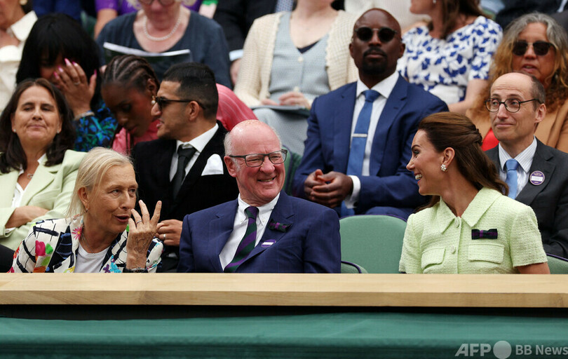 キャサリン妃は元女子テニスのビリー・ジーン・キング(Billie Jean King)氏やマルチナ・ナブラチロワ(Martina Navratilova)氏らと談笑する姿も見られた。(c)AFP