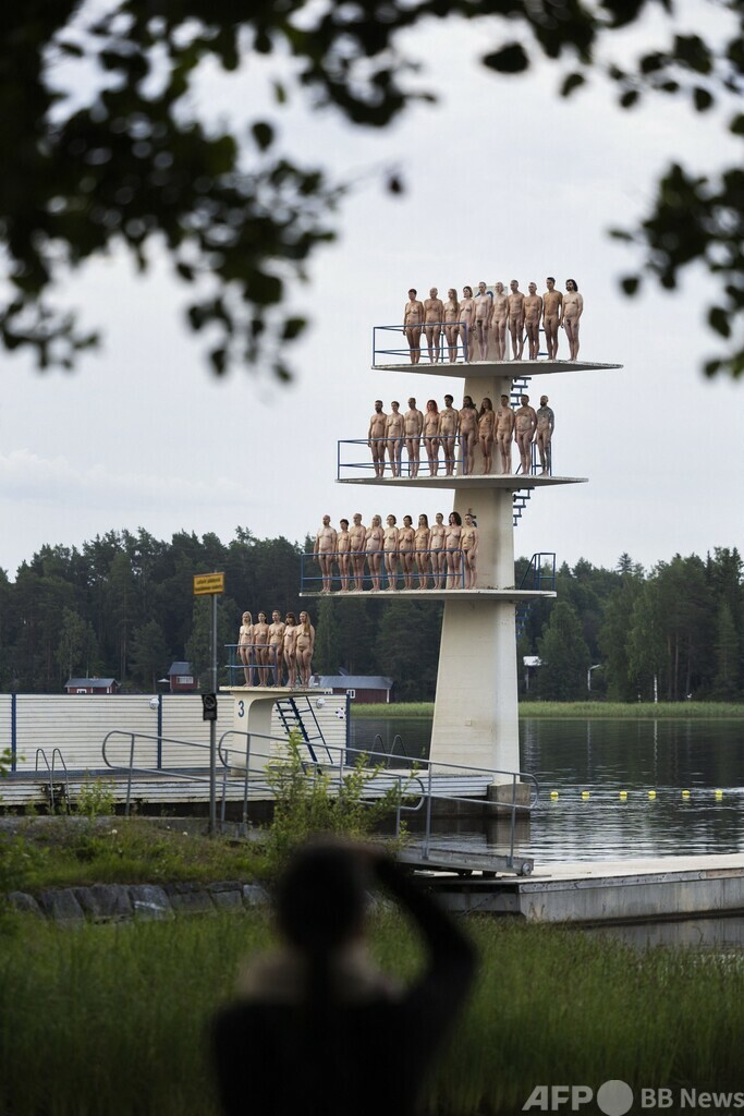 【7月16日 AFP】北欧フィンランド中部クオピオ(Kuopio)で15日、集団ヌード写真で知られる米国の写真家スペンサー・チュニック(Spencer Tunick)氏によるアートイベントが行われ、約1000人がヌードで参加した。