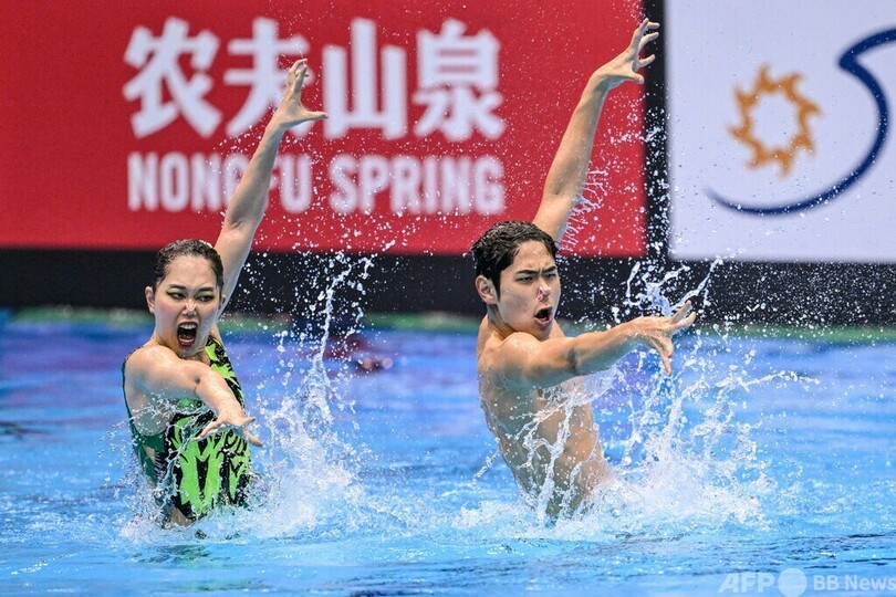 【7月16日 AFP】第20回世界水泳選手権(20th World Aquatics Championships)は16日、福岡県で3日目が行われ、アーティスティックスイミング(AS)の混合デュエット・テクニカルルーティン(TR)決勝で佐藤友花(Tomoka Sato)/佐藤陽太郎(Yotaro Sato)組が金メダルを獲得した。(c)AFP
