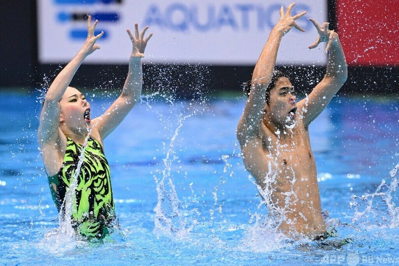 【7月16日 AFP】第20回世界水泳選手権(20th World Aquatics Championships)は16日、福岡県で3日目が行われ、アーティスティックスイミング(AS)の混合デュエット・テクニカルルーティン(TR)決勝で佐藤友花(Tomoka Sato)/佐藤陽太郎(Yotaro Sato)組が金メダルを獲得した。(c)AFP