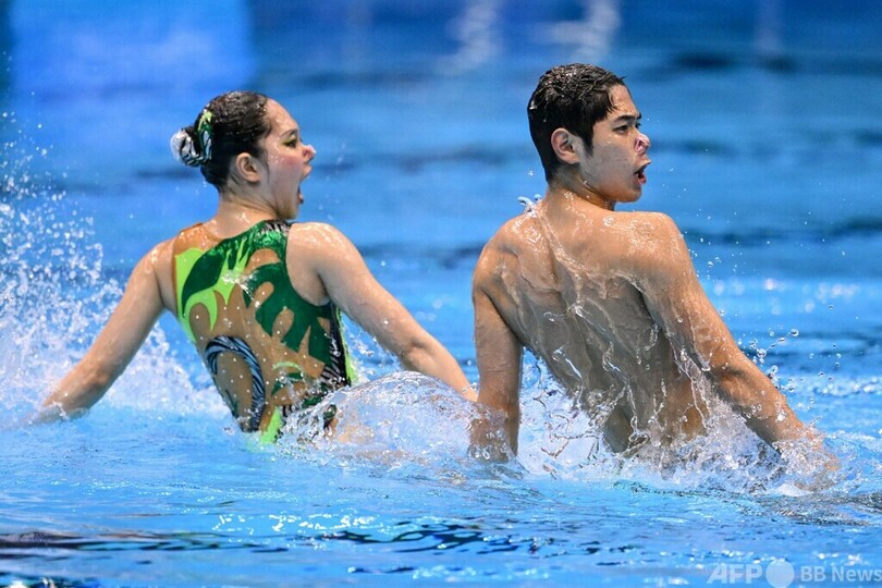 【7月16日 AFP】第20回世界水泳選手権(20th World Aquatics Championships)は16日、福岡県で3日目が行われ、アーティスティックスイミング(AS)の混合デュエット・テクニカルルーティン(TR)決勝で佐藤友花(Tomoka Sato)/佐藤陽太郎(Yotaro Sato)組が金メダルを獲得した。(c)AFP