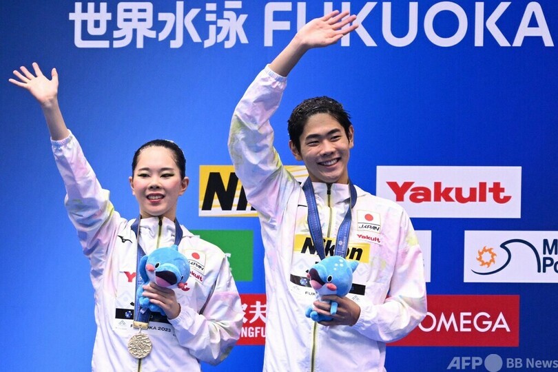 【7月16日 AFP】第20回世界水泳選手権(20th World Aquatics Championships)は16日、福岡県で3日目が行われ、アーティスティックスイミング(AS)の混合デュエット・テクニカルルーティン(TR)決勝で佐藤友花(Tomoka Sato)/佐藤陽太郎(Yotaro Sato)組が金メダルを獲得した。(c)AFP