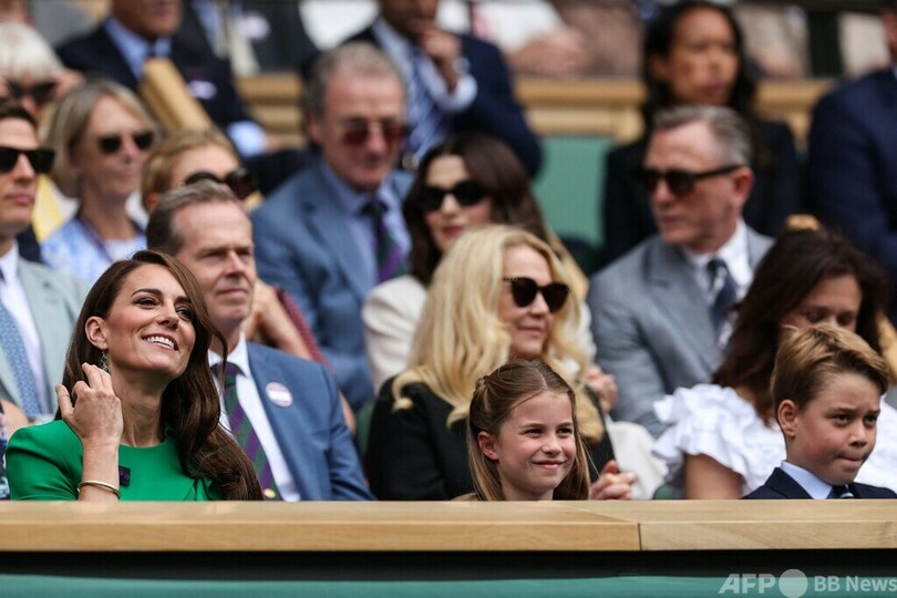【7月16日 AFP】(写真追加)テニス、ウィンブルドン選手権(The Championships Wimbledon 2023)は16日、男子シングルス決勝が行われ、英国のウィリアム皇太子(Prince William)と妻のキャサリン皇太子妃(Catherine, Princess of Wales)、長男のジョージ王子(Prince George)と長女のシャーロット王女(Princess Charlotte)が観戦に訪れた。(c)AFP