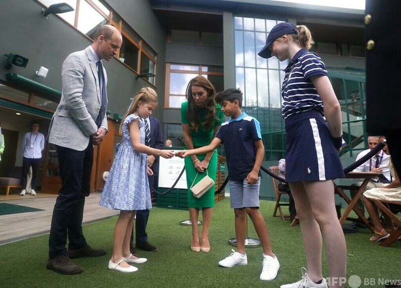 【7月16日 AFP】(写真追加)テニス、ウィンブルドン選手権(The Championships Wimbledon 2023)は16日、男子シングルス決勝が行われ、英国のウィリアム皇太子(Prince William)と妻のキャサリン皇太子妃(Catherine, Princess of Wales)、長男のジョージ王子(Prince George)と長女のシャーロット王女(Princess Charlotte)が観戦に訪れた。(c)AFP