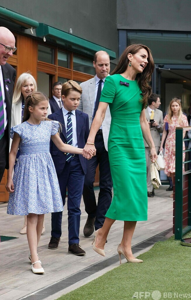 【7月16日 AFP】(写真追加)テニス、ウィンブルドン選手権(The Championships Wimbledon 2023)は16日、男子シングルス決勝が行われ、英国のウィリアム皇太子(Prince William)と妻のキャサリン皇太子妃(Catherine, Princess of Wales)、長男のジョージ王子(Prince George)と長女のシャーロット王女(Princess Charlotte)が観戦に訪れた。(c)AFP