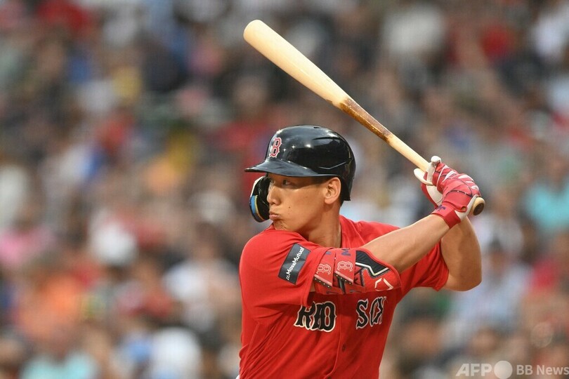 ニューヨーク・メッツ(New York Mets)の千賀滉大(Kodai Senga)はボストン・レッドソックス(Boston Red Sox)戦に先発し、4回途中まで3安打3失点だった。試合はメッツが4-3とリードして迎えた4回途中で雨天延期になった。レッドソックスの吉田正尚(Masataka Yoshida)は2打席に立って無安打だった。(c)AFPBB News