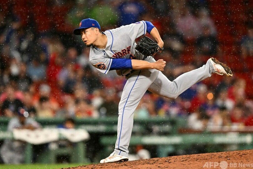ニューヨーク・メッツ(New York Mets)の千賀滉大(Kodai Senga)はボストン・レッドソックス(Boston Red Sox)戦に先発し、4回途中まで3安打3失点だった。試合はメッツが4-3とリードして迎えた4回途中で雨天延期になった。レッドソックスの吉田正尚(Masataka Yoshida)は2打席に立って無安打だった。(c)AFPBB News
