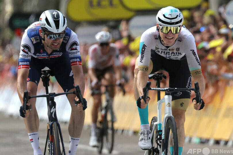 【7月22日 AFP】自転車ロードレース、ツール・ド・フランス(2023 Tour de France)は21日、第19ステージ(モワランアンモンターニュ~ポリニー、172.8キロ)が行われ、バーレーン・ヴィクトリアス(Bahrain Victorious)のマテイ・モホリッチ(Matej Mohoric、スロベニア)が写真判定となる僅差で区間優勝を果たした。
