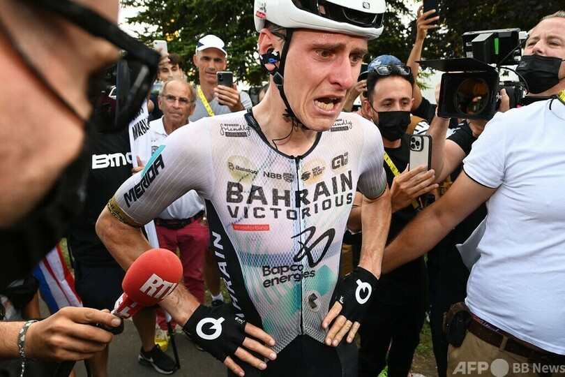 バーレーン・ヴィクトリアスは約1か月前、ツール・ド・スイス(Tour of Switzerland)でジーノ・メーダー(Gino Mader、スイス)選手が事故死する悲劇に見舞われており、チームに今大会3勝目をもたらしたモホリッチは涙を流し、「この勝利はすごく大きい。プロのライダーでいるのは本当に難く、厳しいものだ」とコメントした。(c)AFP/Damian MCCALL