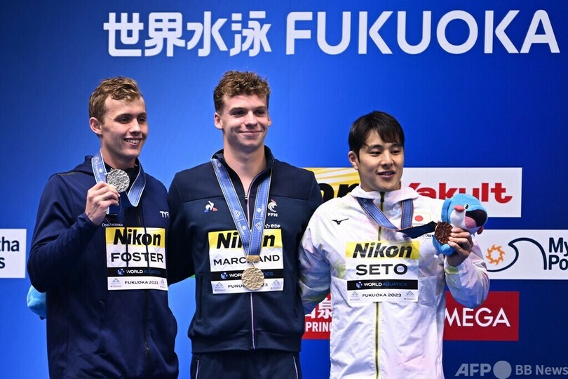 【7月24日 AFP】第20回世界水泳選手権(20th World Aquatics Championships)は23日、福岡県で10日目が行われ、競泳男子400メートル個人メドレーではレオン・マルシャン(Leon Marchand、フランス)がマイケル・フェルプス(Michael Phelps、米国)の最後の世界記録を更新し、金メダルに輝いた。瀬戸大也(Daiya Seto)が銅メダルを獲得した。