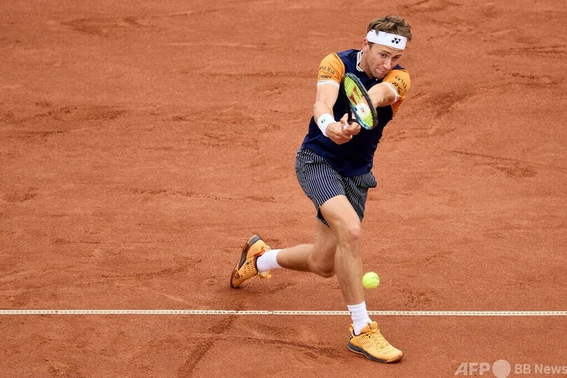 ノルデア・オープンはクレーコートの大会で、ルードは2021年の同大会を含むキャリア通算10勝のうち9勝を同サーフェスで挙げるなど赤土を大得意としているが、この日はルブレフのパワーになすすべがなかった。(c)AFP
