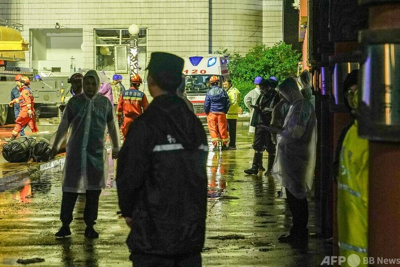 新華社通信によると、建設業者が屋根の上に資材を置いていたことが判明している。雨で資材の重みが増し、屋根が耐えられなくなったことが原因とみられ、警察は建設業者の責任者の身柄を拘束した。(c)AFP
