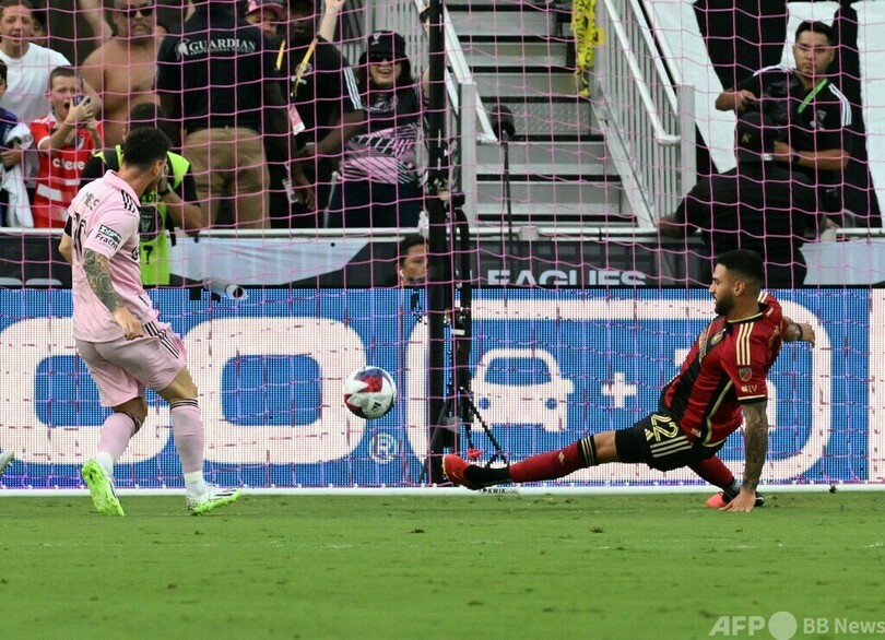 【7月26日 AFP】米メジャーリーグサッカー(MLS)のインテル・マイアミ(Inter Miami)に加入したアルゼンチン代表のリオネル・メッシ(Lionel Messi)は25日、リーグスカップ(Leagues Cup 2023)のアトランタ・ユナイテッド(Atlanta United、米国)戦に先発出場し、2ゴールを記録した。インテル・マイアミは4‐0で快勝を飾り、2連勝で決勝トーナメント進出を決めている。