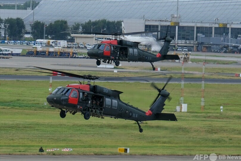 訓練は、空港内にヘリコプターで侵入した「敵」を想定して行われた。台湾最大の同空港で今回のような演習が行われるのは、1979年の開港以来初めて。