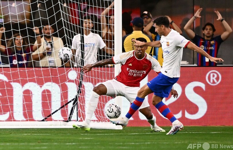 試合はバルセロナが7分にロベルト・レワンドフスキ(Robert Lewandowski)の得点で先制すると、アーセナルも13分に相手DFアンドレアス・クリステンセン(Andreas Christensen)のミスからブカヨ・サカ(Bukayo Saka)がゴールを決め、すぐさま同点に追いついた。