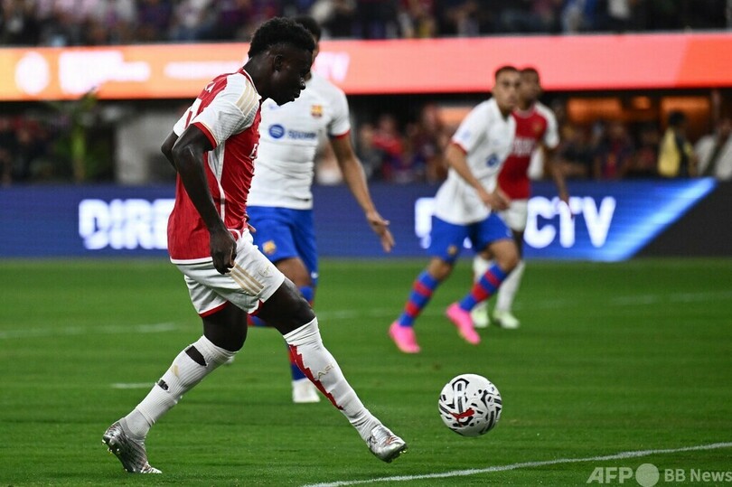 試合はバルセロナが7分にロベルト・レワンドフスキ(Robert Lewandowski)の得点で先制すると、アーセナルも13分に相手DFアンドレアス・クリステンセン(Andreas Christensen)のミスからブカヨ・サカ(Bukayo Saka)がゴールを決め、すぐさま同点に追いついた。