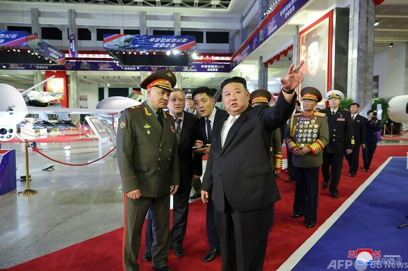朝鮮中央通信(KCNA)は、「武装装備展示会」の会場でショイグ氏を案内する金氏の写真を公開した。会場にはICBM「火星17(Hwasong 17)」や「火星18(Hwasong 18)」も並んでいる。韓国ソウルに拠点を置く北朝鮮関連ニュースサイト「NKニュース(NK News)」によると、これまで未公開の無人機も展示されているという。