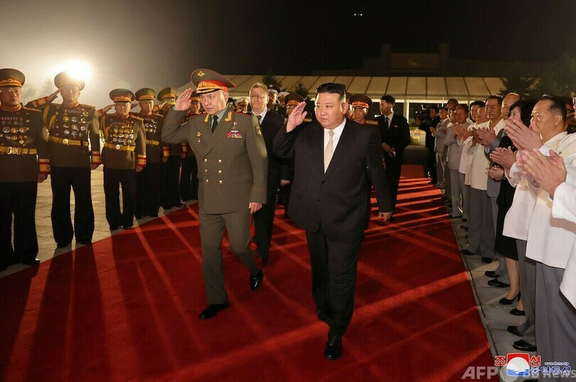 【7月27日 AFP】北朝鮮の金正恩(キム・ジョンウン、Kim Jong Un)朝鮮労働党総書記が、同国を訪問中のロシアのセルゲイ・ショイグ(Sergei Shoigu)国防相に大陸間弾道ミサイル(ICBM)や無人機(UAV)など、同国の最新高性能兵器を披露した。国営メディアが27日、伝えた。