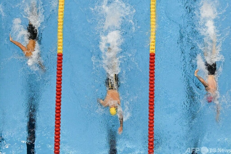 一方、男子100メートル、200メートル自由形で前回大会2冠の新星ダビド・ポポビチ(David Popovici、ルーマニア)は、世界記録保持者として臨んだ100メートルで6位に沈んだ。25日の200メートルも4位に終わり、今大会は無冠となった。(c)AFP/Andrew MCKIRDY
