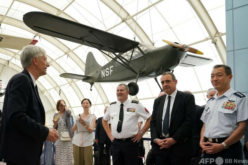 内倉浩昭(Hiroaki Uchikura)航空幕僚長、仏空軍トップのステファン・ミル(Stephane Mille)参謀長やフィリップ・セトン(Philippe Setton)駐日フランス大使も訪れた。(c)AFP