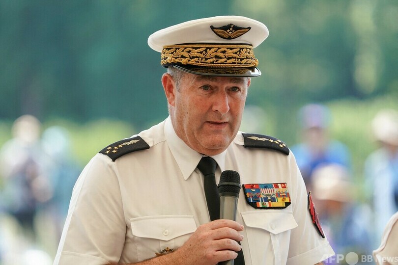 内倉浩昭(Hiroaki Uchikura)航空幕僚長、仏空軍トップのステファン・ミル(Stephane Mille)参謀長やフィリップ・セトン(Philippe Setton)駐日フランス大使も訪れた。(c)AFP
