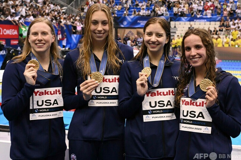 ここまで金4個にとどまり、金メダル獲得数で13個のオーストラリアを抜くのは不可能になっていた米国だが、この日は男子50メートル背泳ぎでハンター・アームストロング(Hunter Armstrong)が勝利すると、男女の4×100メートルメドレーリレーも優勝で締めくくり、最後に金メダルラッシュを披露した。