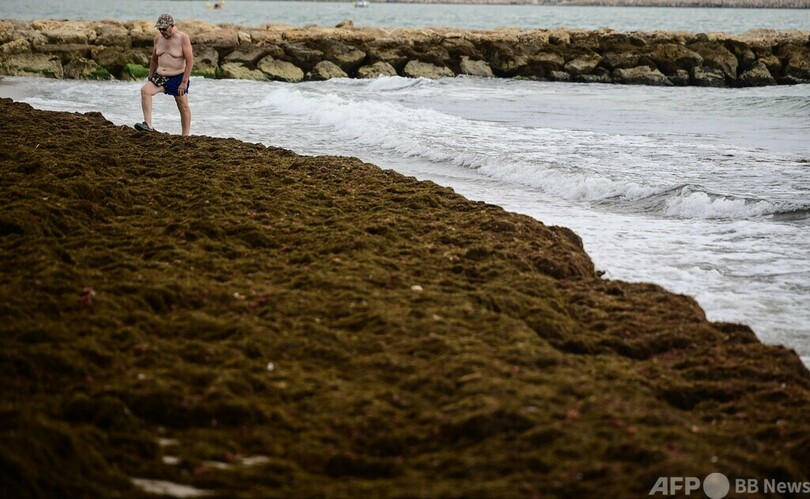 【7月31日 AFP】地中海の水温が過去最高を記録する中、スペイン南東部バレンシア(Valencia)のピネド(Pinedo)の海岸にクラゲや藻類が漂着した。