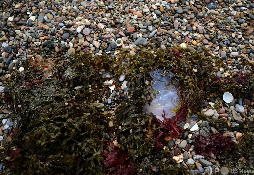 【7月31日 AFP】地中海の水温が過去最高を記録する中、スペイン南東部バレンシア(Valencia)のピネド(Pinedo)の海岸にクラゲや藻類が漂着した。