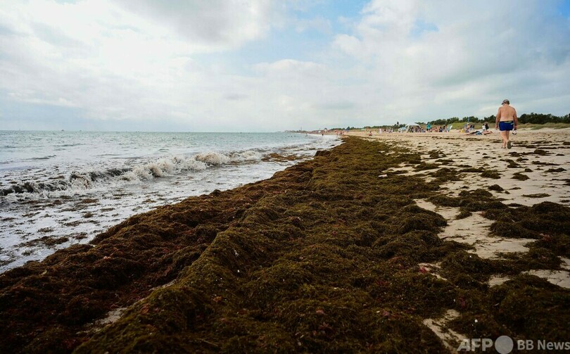 【7月31日 AFP】地中海の水温が過去最高を記録する中、スペイン南東部バレンシア(Valencia)のピネド(Pinedo)の海岸にクラゲや藻類が漂着した。