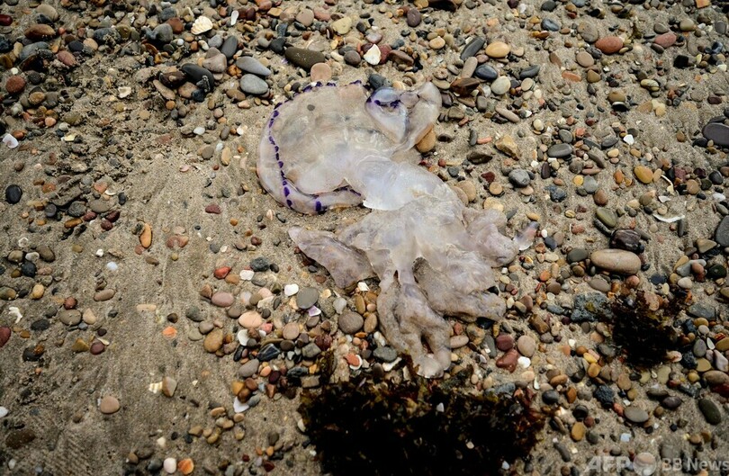 【7月31日 AFP】地中海の水温が過去最高を記録する中、スペイン南東部バレンシア(Valencia)のピネド(Pinedo)の海岸にクラゲや藻類が漂着した。