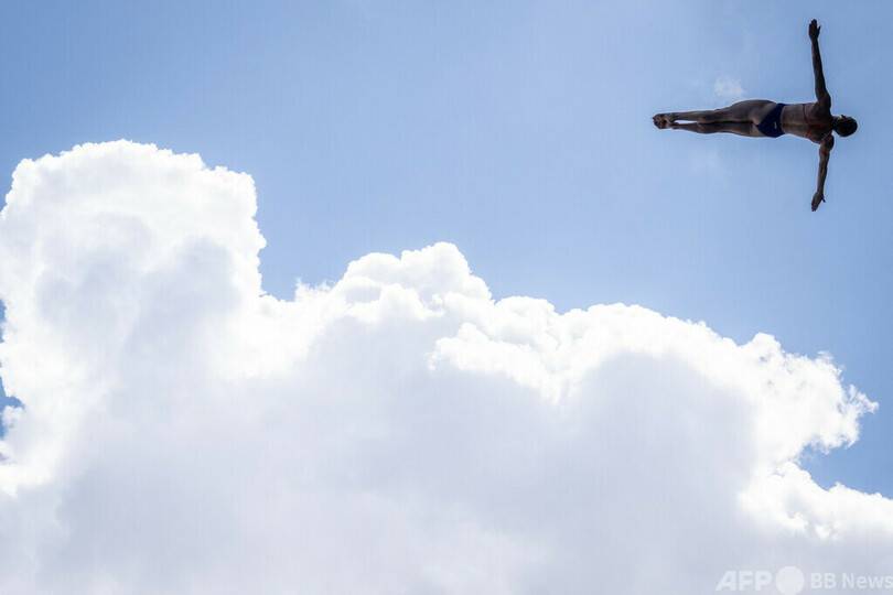【今日の1枚】空に浮かぶ、世界水泳ハイダイビング