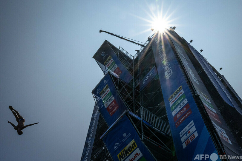 【今日の1枚】空に浮かぶ、世界水泳ハイダイビング