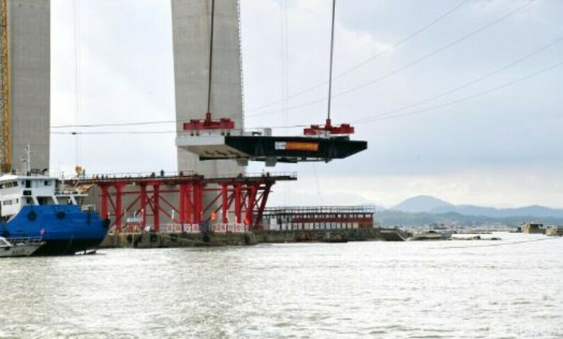 広西チワン族自治区で最長の海をまたぐ橋の工事 箱桁架設段階に
