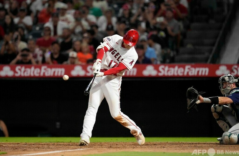 【8月4日 AFPBB News】米大リーグ(MLB)は3日、各地で試合が行われ、ロサンゼルス・エンゼルス(Los Angeles Angels)の大谷翔平(Shohei Ohtani)はシアトル・マリナーズ(Seattle Mariners)戦に2番・投手兼指名打者(DH)で先発し、右手と指のけいれんのため4回3安打無失点で降板したが、打っては8回に40号ソロ本塁打を放つなど2打数2安打2四球を記録した。エンゼルスは9回に逆転を許し、3-5で敗れた。(c)AFPBB News