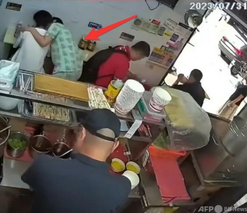 男性はこの日、防犯カメラの動画をネットに投稿して、出勤前に店で朝食を食べていた時に女性にキスをされたと説明しました。投稿された防犯カメラの動画によると、白い半袖の衣服を着た男性が午前7時45分ごろに、店の一番奥の席に座って朝食を食べていました。すると、緑の半袖の衣服とズボンを着用した女が店に入ってきて、男の肩に両手をかけて俯いて男の右の頬にキスをして、店を出ていきました。男性は驚きのあまり「固まって」しまいました。